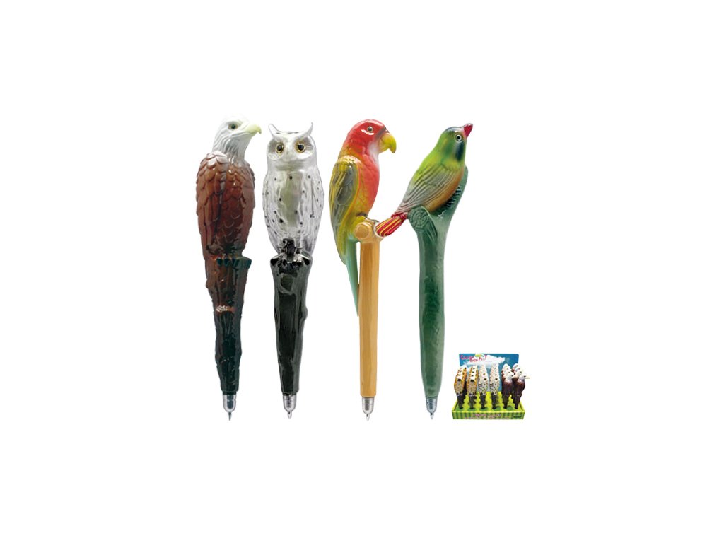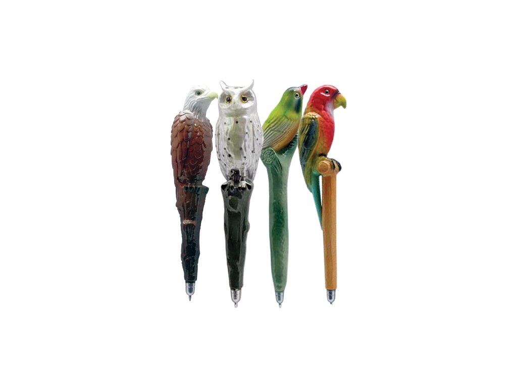 Guličkové pero dekoračné, s vymeniteľnou náplňou, vyrobené z kvalitného na dotyk príjemného plastu, dodávané v dizajnoch dravých vtákov.