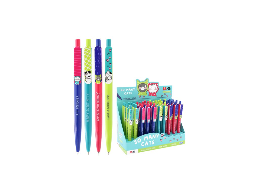 Pero guľôčkové M&G So Many Cats 0,7 mm, modré