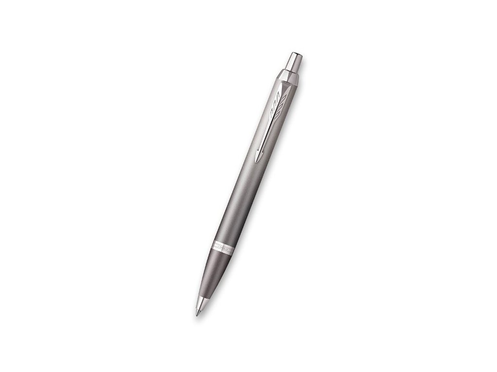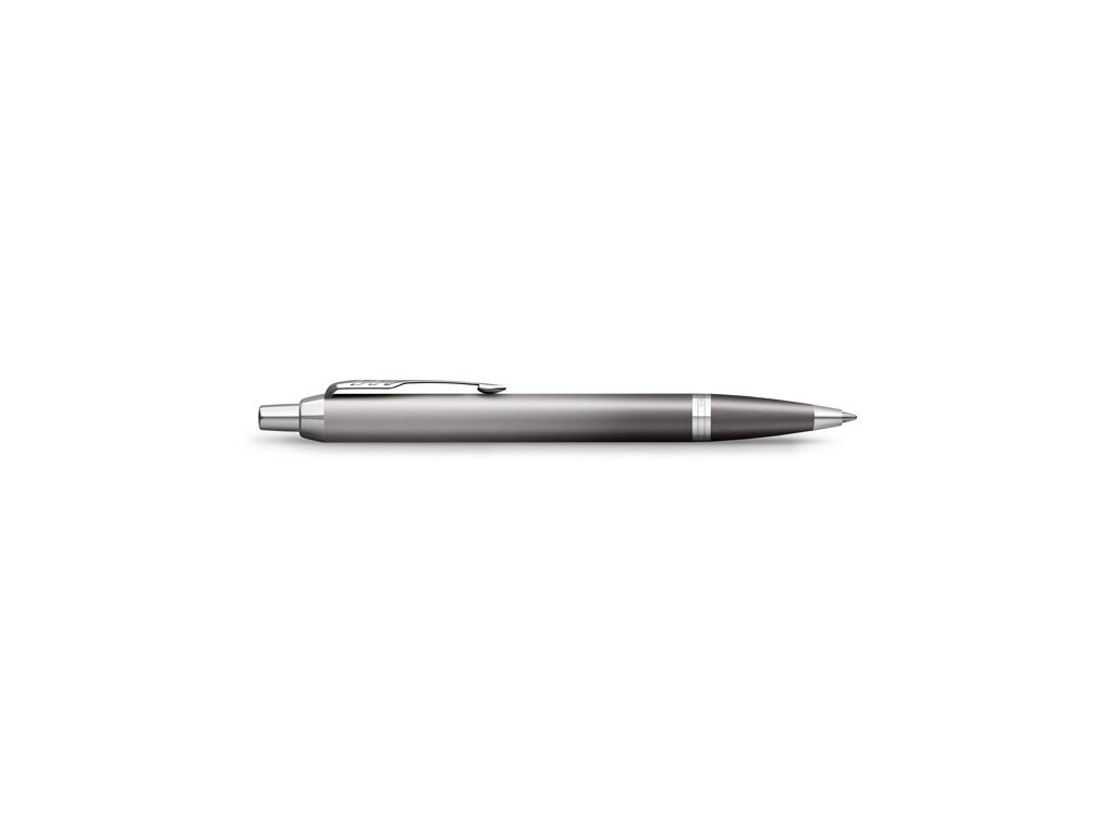 Guľôčkové pero Parker IM Writing Rituals Grey CT má telo pokryté saténovo metalickým farebným lakom.