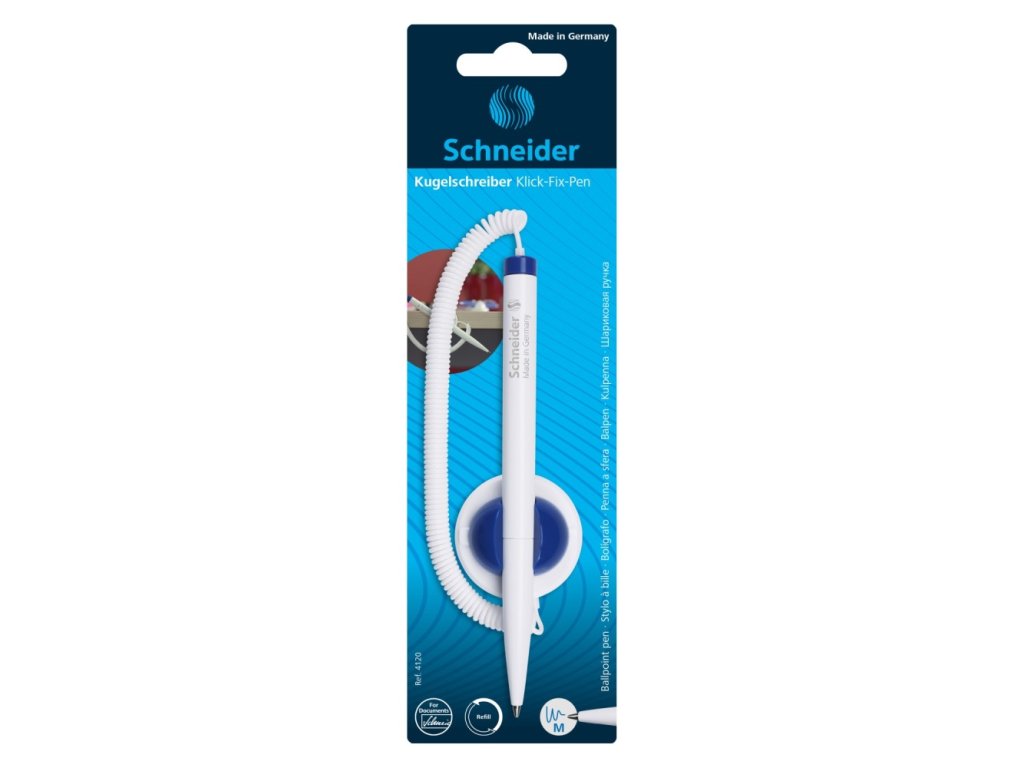 Guľôčkové pero Schneider Klick-Fix-Pen na strunke s podložkou, držiak na pero je možné otočiť do ľubovoľnej polohy.