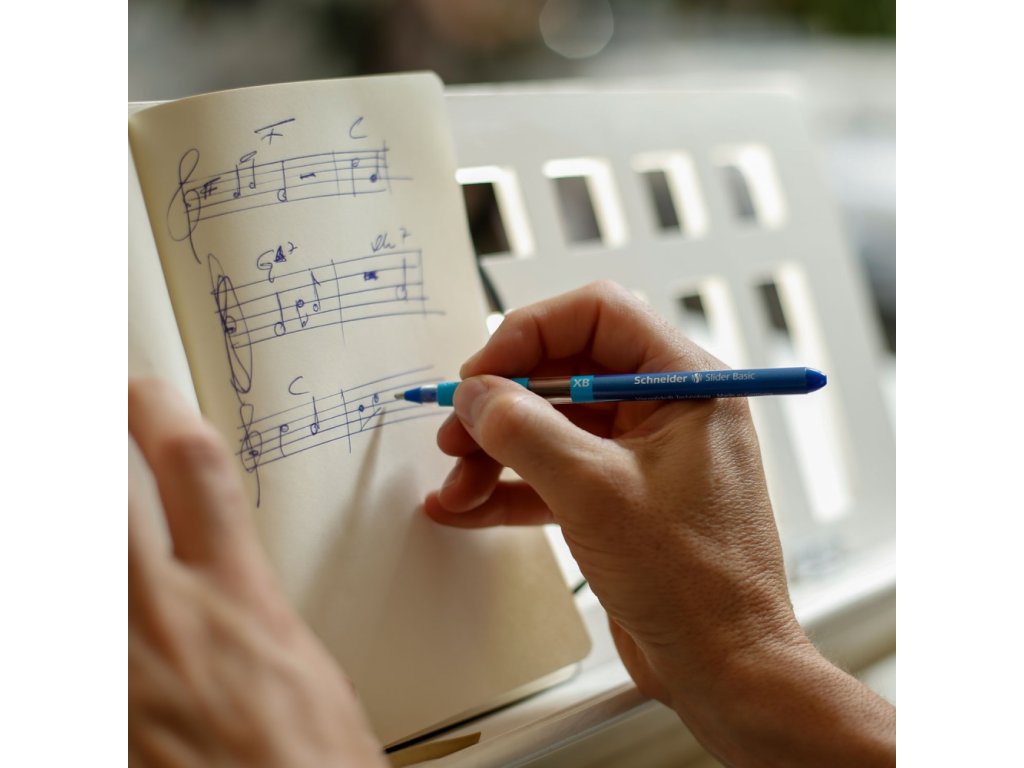 Guľôčkové pero Schneider Slider Basic XB s Viscoglide® technológiou pre hladké a kĺzavé písanie.