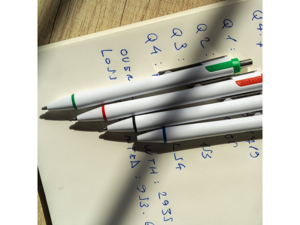 Guľôčkové pero s telom vyrobeným zo 70 % bioplastov.