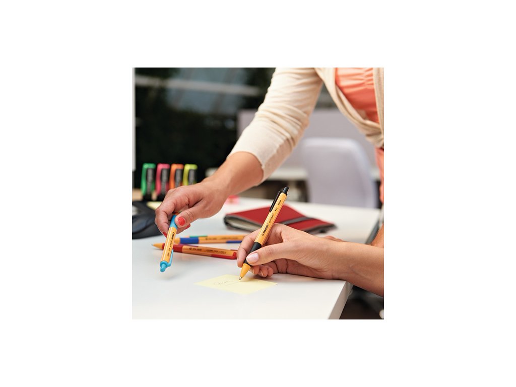 STABILO pointball je dostupný v 6 farbách atramentu - modrej, čiernej, červenej, zelenej, fialovej a tyrkysovej.