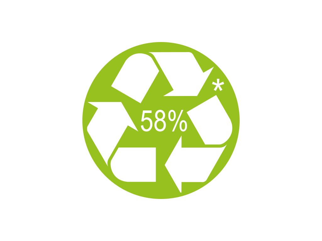 Ekologický produkt, šetrný k zdrojom telo a uzáver vyrobené z 58 % recyklovaného plastu