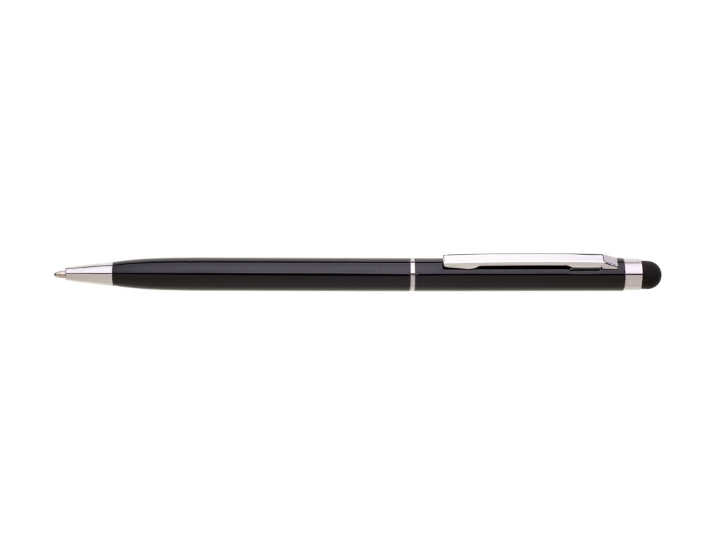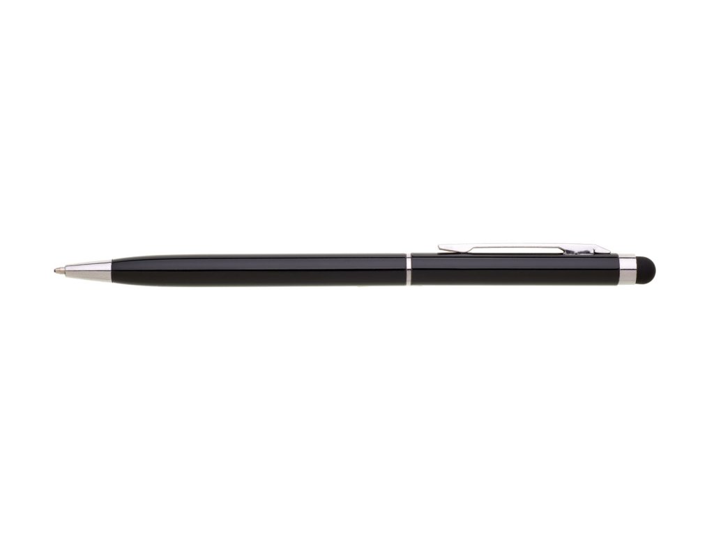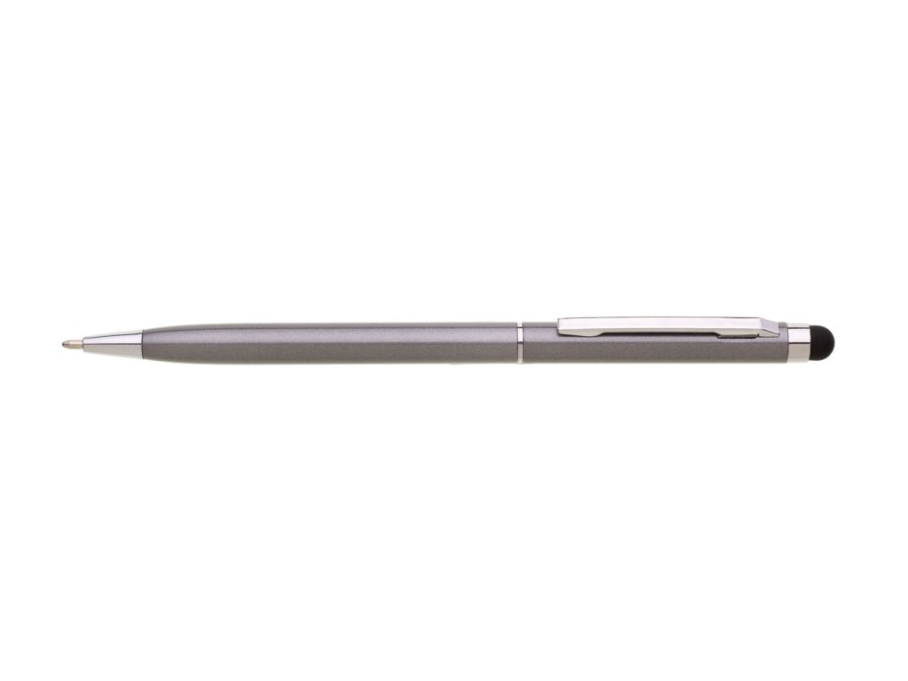 Tenké kovové guľôčkové pero s otočným mechanizmom a hrotom pre ovládanie dotykovej obrazovky. Strieborné chrómové doplnky, modrá náplň cross. Materiál hliník. Kolekcia EVERGREEN.Dodatočné parametre