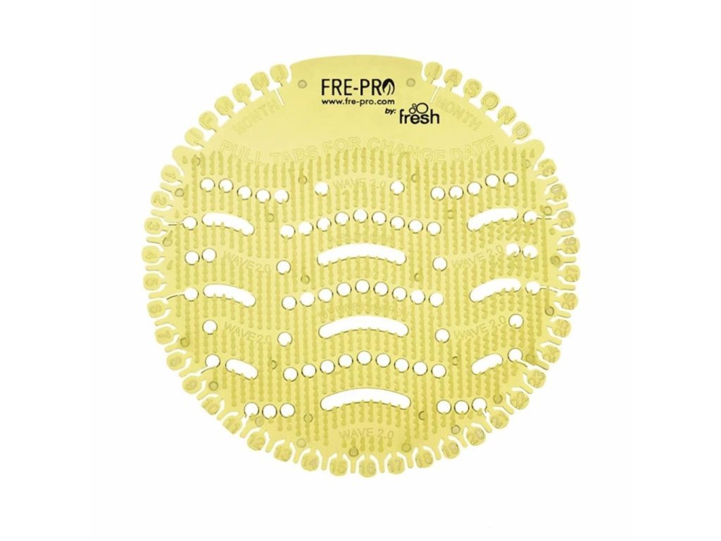 Vonné sitko na prevoňanie pisoárov - účinnosť 30 dníVonné gélové sitko do pisoára Wave 2 je súčasťou radu originálnych produktov FRE-PRO. Revolučný transparentný a flexibilný dizajn, umožňujúci náhľad do odpadových ciest, redukuje rozstrekovanie moču, udržuje pisoár v čistote a redukuje čas potrebný na očistu až o polovicu.