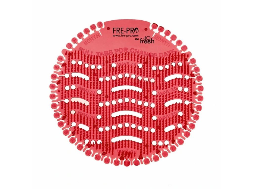 Vonné sitko na prevoňanie pisoárov - účinnosť 30 dníVonné gélové sitko do pisoára Wave 2 je súčasťou radu originálnych produktov FRE-PRO. Revolučný transparentný a flexibilný dizajn, umožňujúci náhľad do odpadových ciest, redukuje rozstrekovanie moču, udržuje pisoár v čistote a redukuje čas potrebný na očistu až o polovicu.