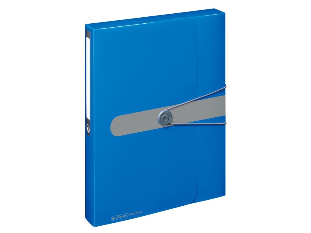 Box z polypropylénu Easy Orga na dokumenty formátu A4. Kapacita 400 listov, šírka chrbta 4 cm. Zatváranie sivou gumičkou o sivý plastový krúžok, nalepený chrbtový štítok na popis obsahu. Väčšie balenie 10 ks. Farba modrá.Dodatočné parametre