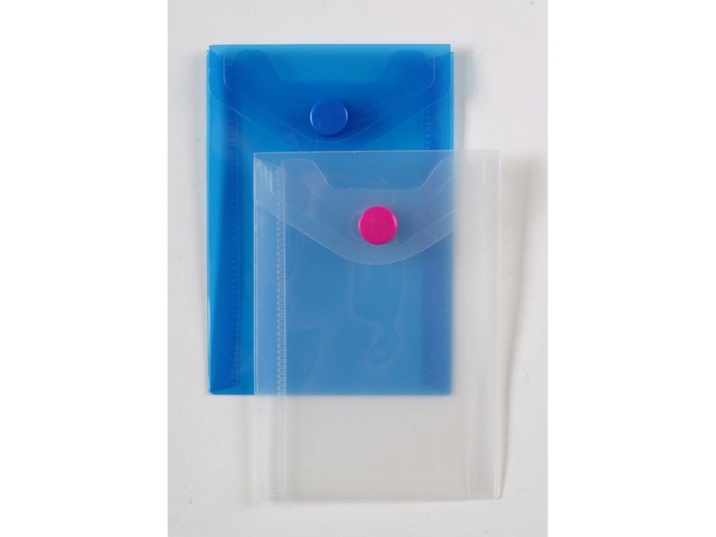 Polypropylénový obal s cvočkom. Formát A7. Farba modrá. Väčšie balenie 5 kusov.Dodatočné parametre