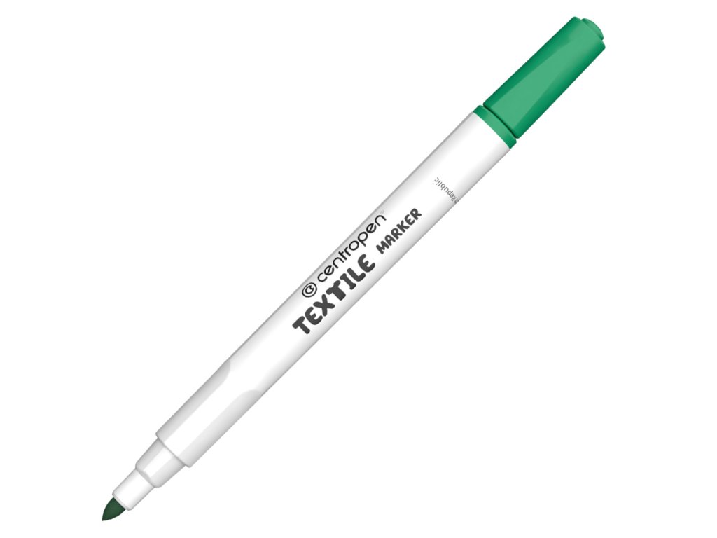Popisovač na textílie s okrúhlym hrotom a ergo držaním. Bez nutnosti zažehlenia. Zdraviu neškodlivý atrament, svetlostály. Farby sú odolné voči praniu do 60 °C. Šírka stopy 1,8 mm. Farba: zelená.Dodatočné parametre
