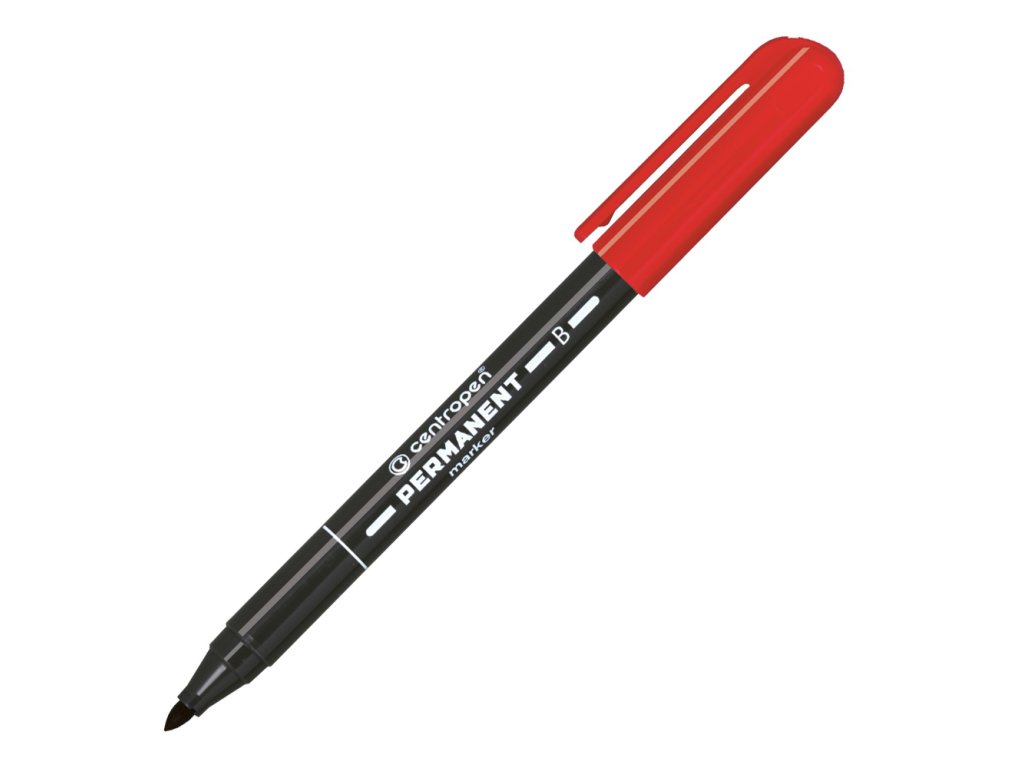 Permanentný popisovač - červený. Píše na väčšinu povrchov - píše na papier, gumu, kožu, plasty, kovy. Odolá vode, oteru, poveternostným vplyvom. Atrament na alkoholovej báze. Valcový hrot so šírkou stopy 2 mm.Dodatočné parametre