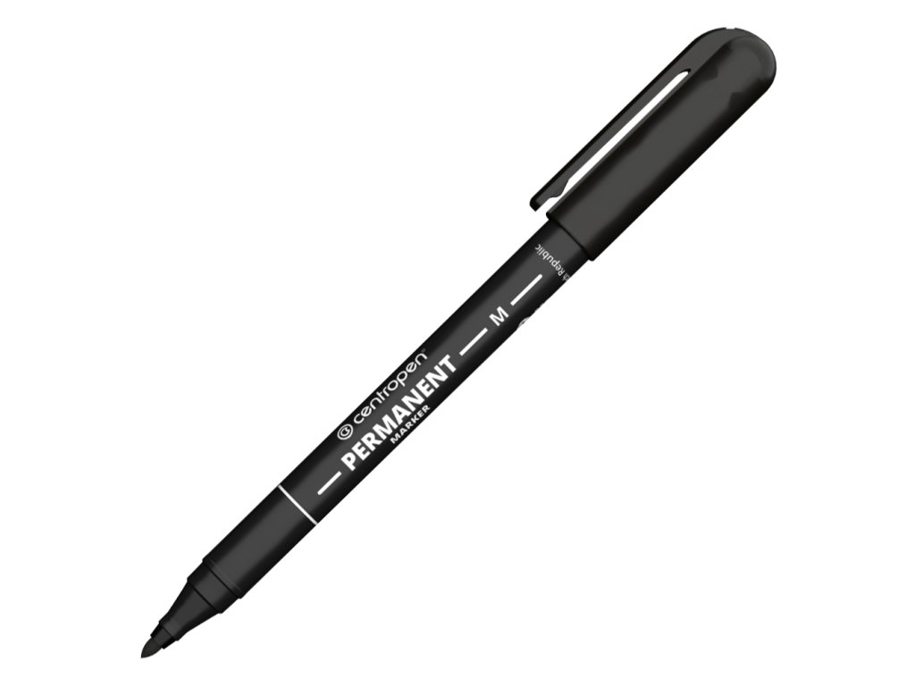 Permanentný popisovač na alkoholovej báze píše na väčšinu povrchov. Odolá vode, oteru, poveternostným vplyvom. Válcový hrot so šírkou stopy 1 mm. Farba: čierna.Dodatočné parametre