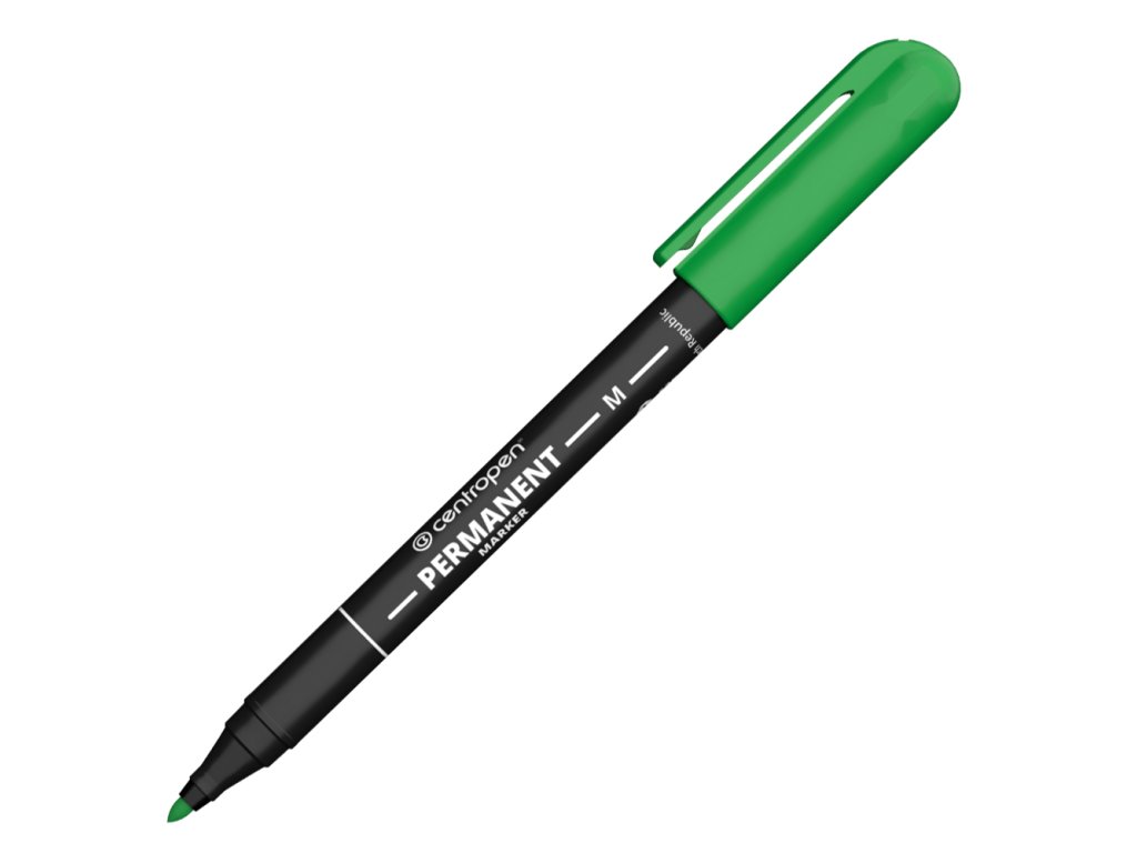 Permanentný popisovač na alkoholovej báze píše na väčšinu povrchov. Odolá vode, oteru, poveternostným vplyvom. Válcový hrot so šírkou stopy 1 mm. Farba: zelená.Dodatočné parametre