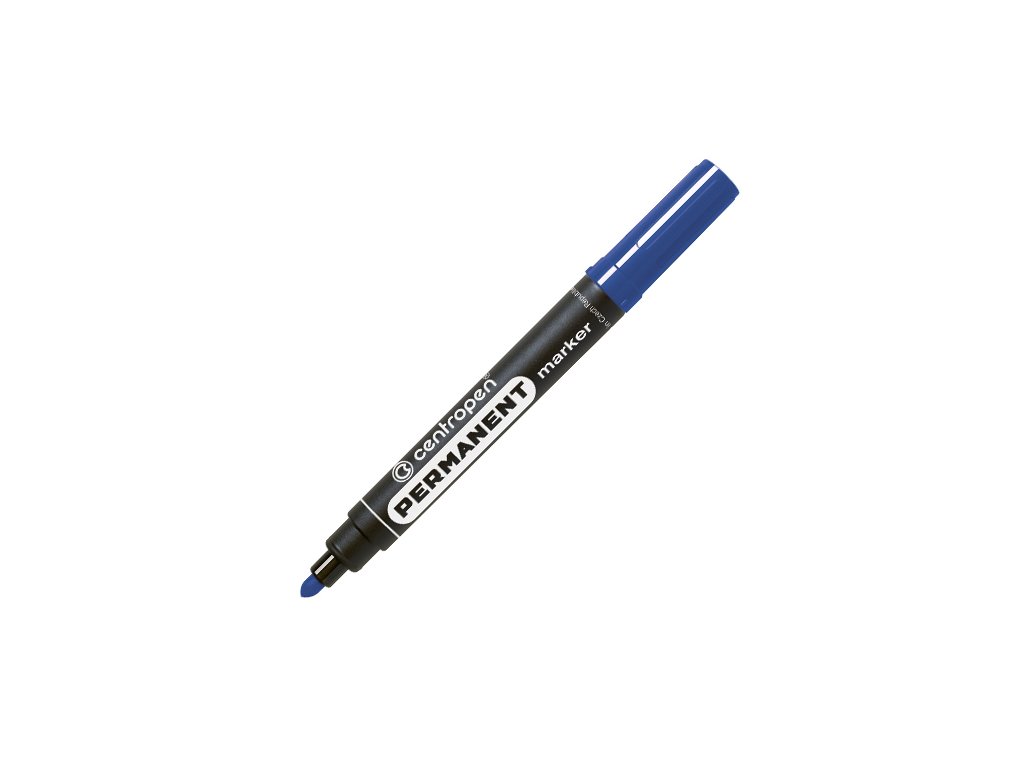 Popisovač s permanentným atramentom na alkoholovej báze, s valcovitým hrotom, šírkou stopy 2,5 mm - stopa písma je odolná voči vode, teplote do 100°C, oteru a poveternostným vplyvom. Určený na písanie na neporézne materiály, plasty, sklo, gumu, kožu, kovy. Farba modrá.Dodatočné parametre