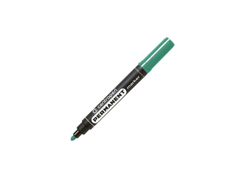 Popisovač s permanentným atramentom na alkoholovej báze, s valcovitým hrotom, šírkou stopy 2,5 mm - stopa písma je odolná voči vode, teplote do 100°C, oteru a poveternostným vplyvom. Určený na písanie na neporézne materiály, plasty, sklo, gumu, kožu, kovy. Farba zelená.Dodatočné parametre