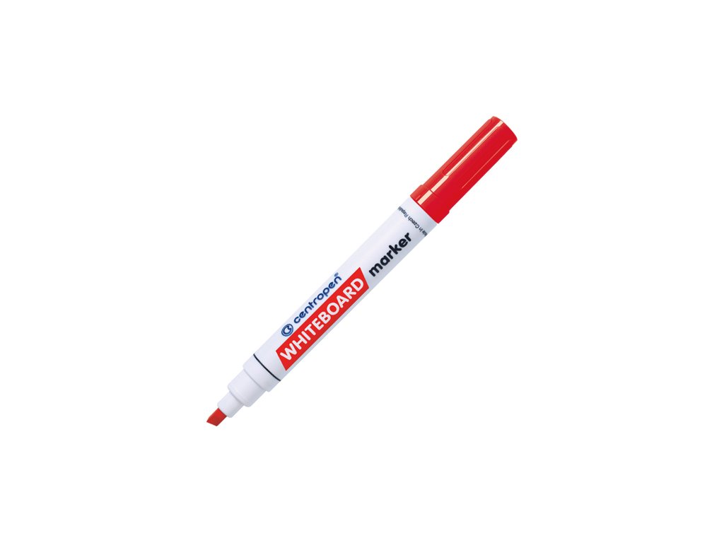 Popisovač na biele smaltované tabule a na nepórovité povrchy. Stierateľný za sucha, svetlostály, atrament na liehovej báze. Klinový hrot, priemer 5 mm. Šírka stopy 1-4,5 mm. Farba: červená.Dodatočné parametre
