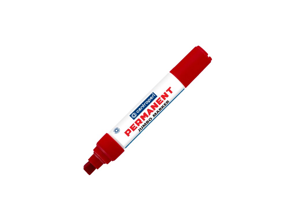 Jumbo permanentný popisovač, ktorý píše na akýkoľvek materiál, napr. na papier, plasty, sklo, keramiku, gumu, kožu, drevo, kovy, ... Popisovač obsahuje zvlášť veľkú zásobu permanentného atramentu na alkoholovej báze. Atrament veľmi rýchle zasychá. Stopa písma je odolná voči vode aj pri bode varu, teplote do 100 °C, oteru a poveternostným vplyvom. Špeciálny klinový hrot. Šírka stopy 2–10 mm. Farba: červená.Dodatočné parametre