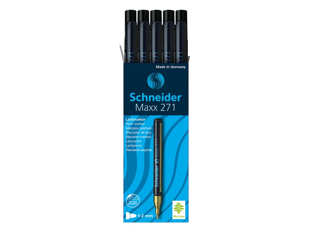 Schneider Maxx 271 je vysokokvalitný lakový popisovač s použitím takmer na všetky kompaktné povrchy.