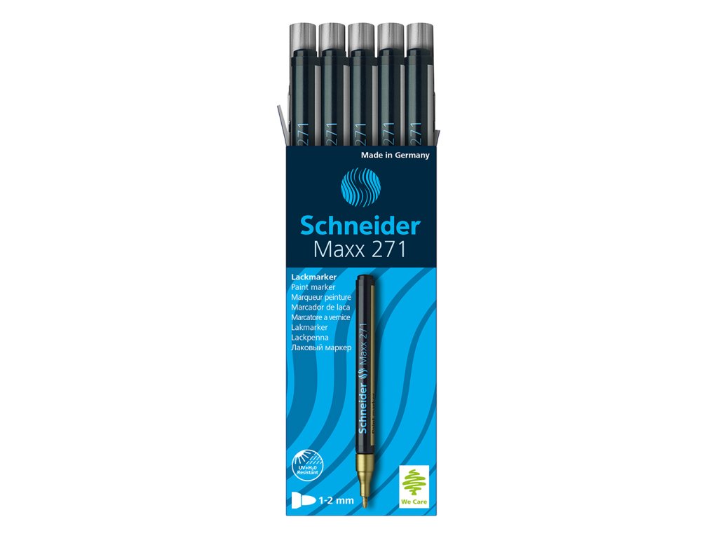 Schneider Maxx 271 je vysokokvalitný lakový popisovač s použitím takmer na všetky kompaktné povrchy.