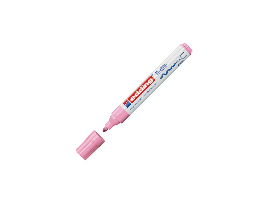 Popisovač na textílie s okrúhlym hrotom strednej hrúbky. Plnený atramentom bez zápachu na báze vody. Farby treba zafixovať žehlením na sucho. Po zafixovaní sú farby odolné voči praniu do 60°C. Šírka stopy: 2-3 mm. Farba: ružová.Dodatočné parametre