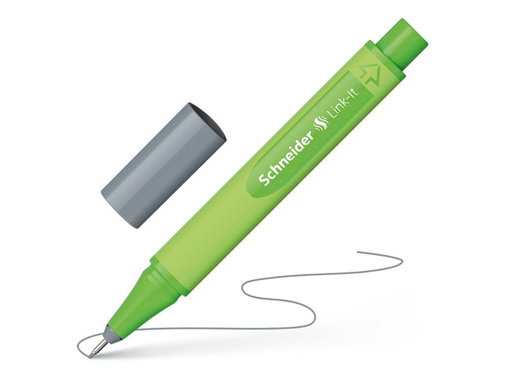 Popisovač Schneider Link-It 0,4 mm šedá. Klikk! Inovativní, spojitelné linery a fixy, které po spojení tvoří pero s 2 hroty po spojení vzniká 1 popisovač, který zajistí úsporu místa na stole, nebo v penálu Link-it linery a fixy lze libovolně spojovat v 16 různých barvách pogumovaný, trojúhelníkový tvar těla pro pohodlné psaní tělo v 88% z plastu s BIO základem barva víka se shoduje s barvou inkoustu inkoust na bázi vody.Dodatočné parametre