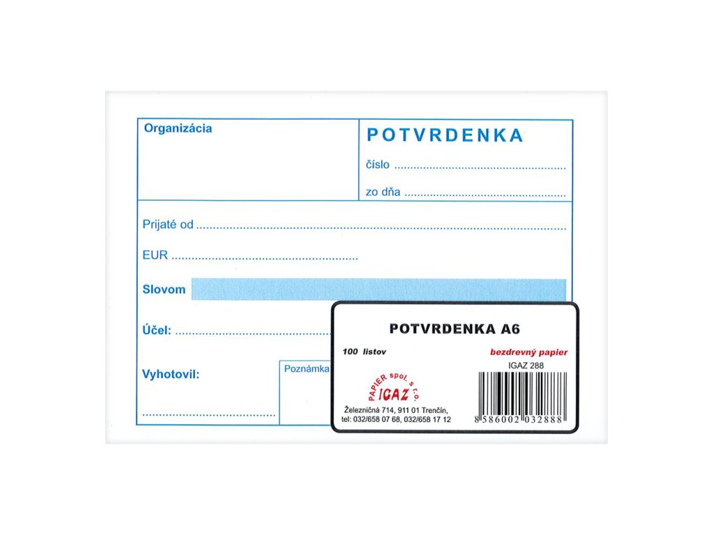 Potvrdenka A6, 100 listov (288)