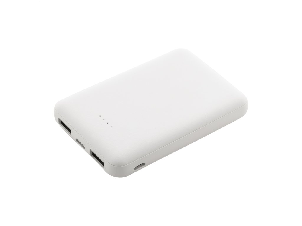 Power banka z recyklovaného ABS plastu s batériou 5 000 mAh. S 2 USB a 1 nabíjacím portom USB-C. Vstupné porty micro USB a USB-C. Vrátane nabíjacieho kábla USB.Dodatočné parametre