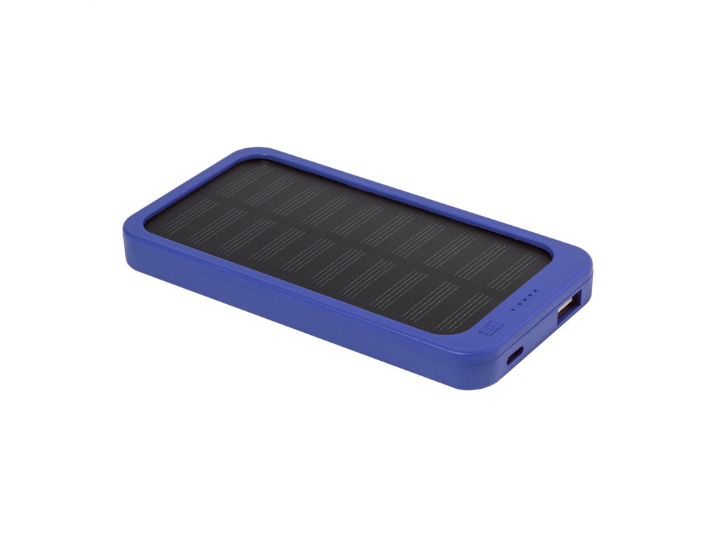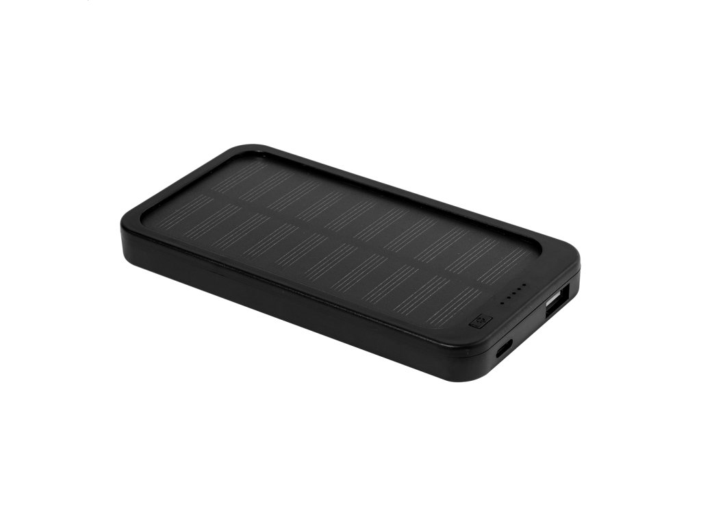 Power banka z recyklovaného ABS plastu so vstavanou solárnou nabíjačkou a batériou 4000 mAh. S 1 USB a 1 USB-C portom na nabíjanie. Vstupný port USB-C. Vrátane nabíjacieho kábla USB.Dodatočné parametre