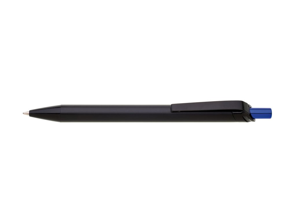 Čierne kovové pero PRESA má metalicky farebné zapínanie a výsledný efekt laseru je tiež v rovnakej farbe. Modrá náplň veľkoobjemová. Kolekcia DESIGN.Dodatočné parametre