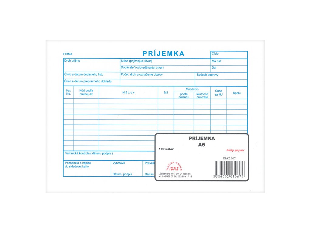 Príjemka A5, 100 l. (067)