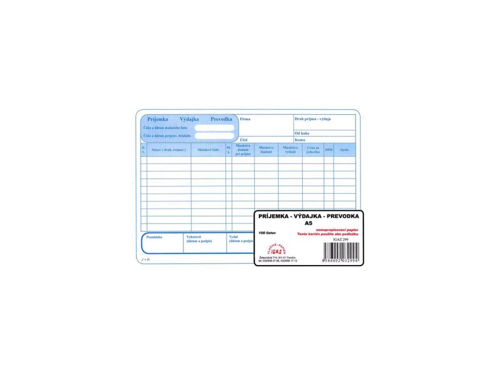 Obchodné tlačivo. Príjemka - výdajka - prevodka s DPH, samoprepis, A5, blok, 100 listov.Dodatočné parametre