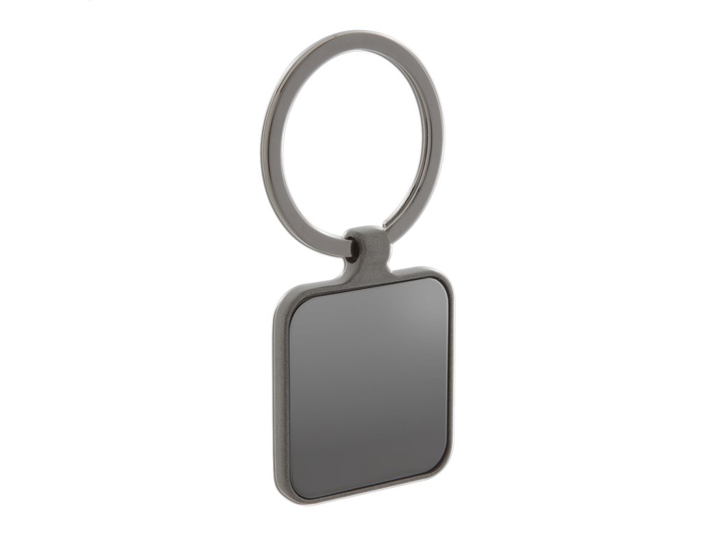 Štvorcový prívesok na kľúče vo farbe gun metal s obojstranným lesklým povrchom.Dodatočné parametre