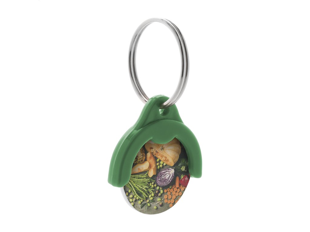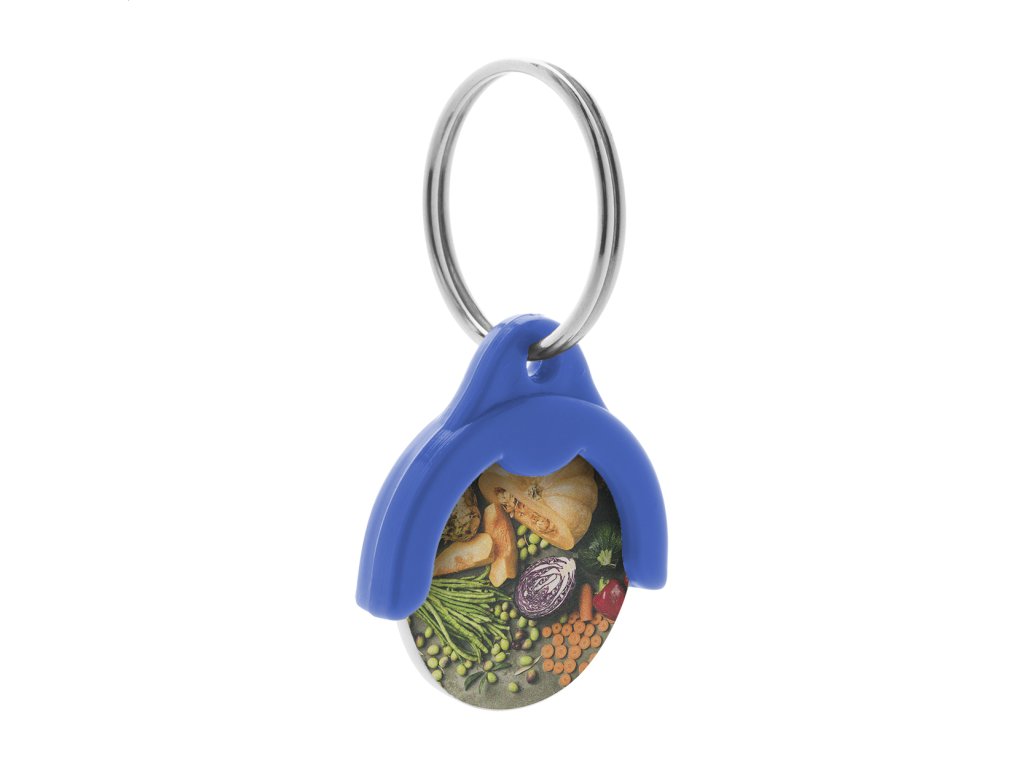 Plastový prívesok na kľúče s plnofarebne potlačeným žetónom do nákupného vozíka. Cena zahŕňa UV LED tlač na 1 strane mince, nezahŕňa tlačovú prípravu. Min. mn.: 200 ks.Dodatočné parametre