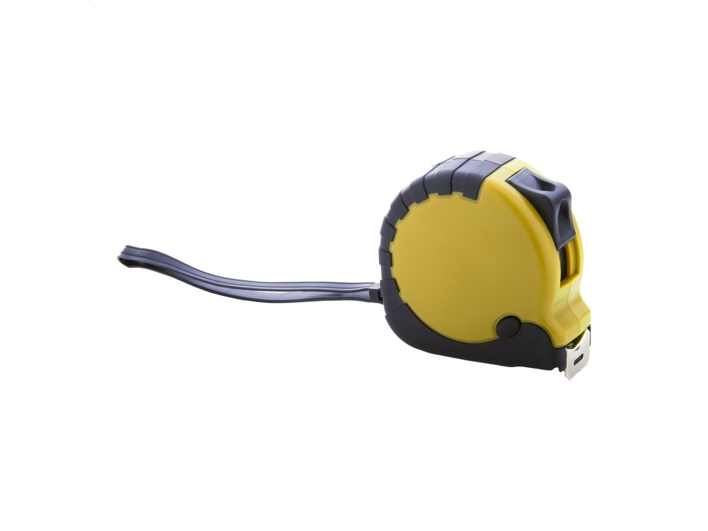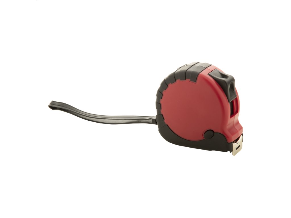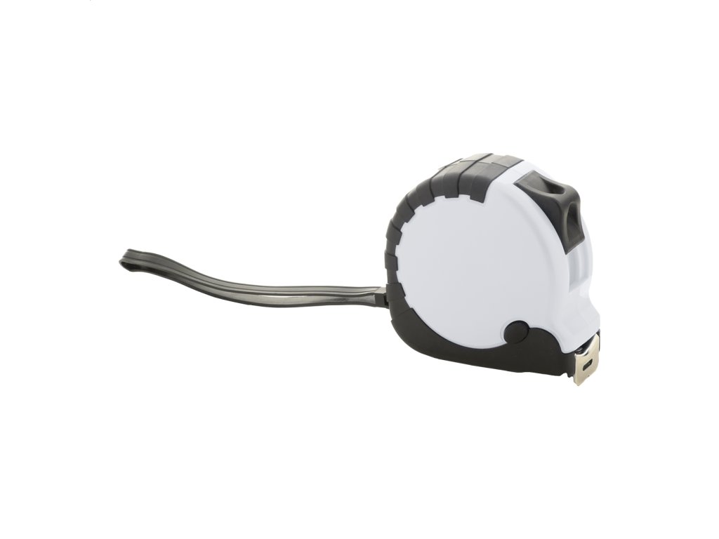 Zvinovací meter z recyklovaného ABS plastu s funkciou zámku, kovovou sponou a opaskom na ruku, 5m.Dodatočné parametre