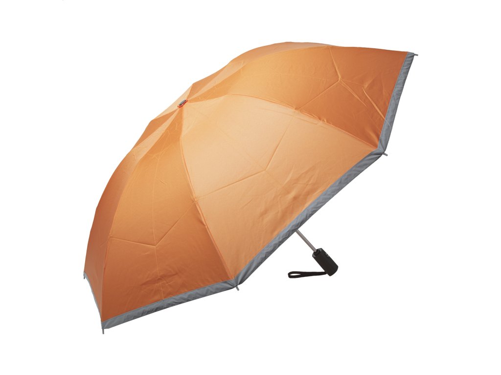 Plnoautomatický (otevrenie/zavtvorenie) vetruodolný skladací dáždnik s 8 panelmi a reflexným olemovaním. Kovová tyč, hliníkový rám, rebrá zo sklolaminátu a plastová rukoväť. V obale s reflenými páskami v obale rovnakej farby, 1900T pongee. Iba na propagačné účely, sa produkt nekvalifikuje ako osobný ochranný prostriedok.Dodatočné parametre