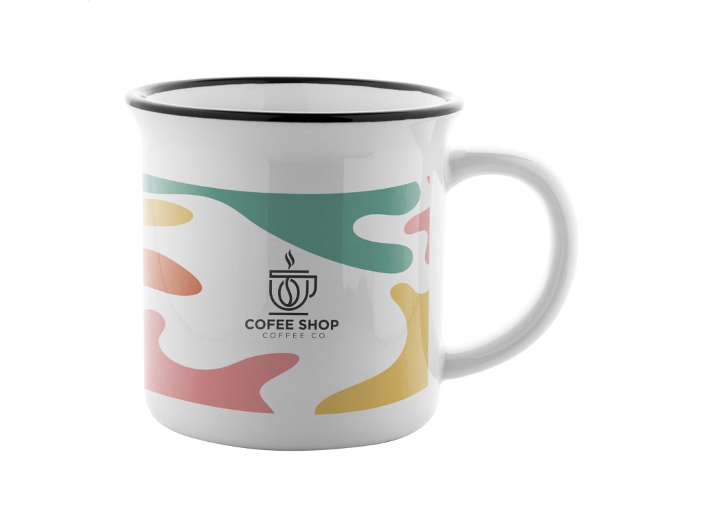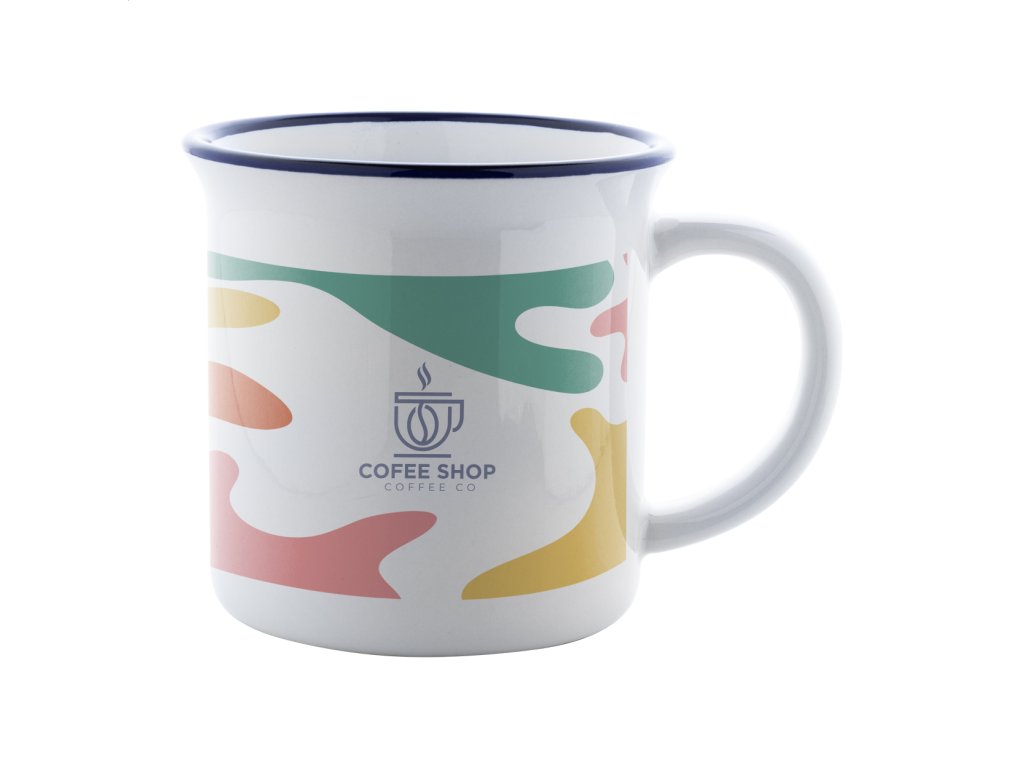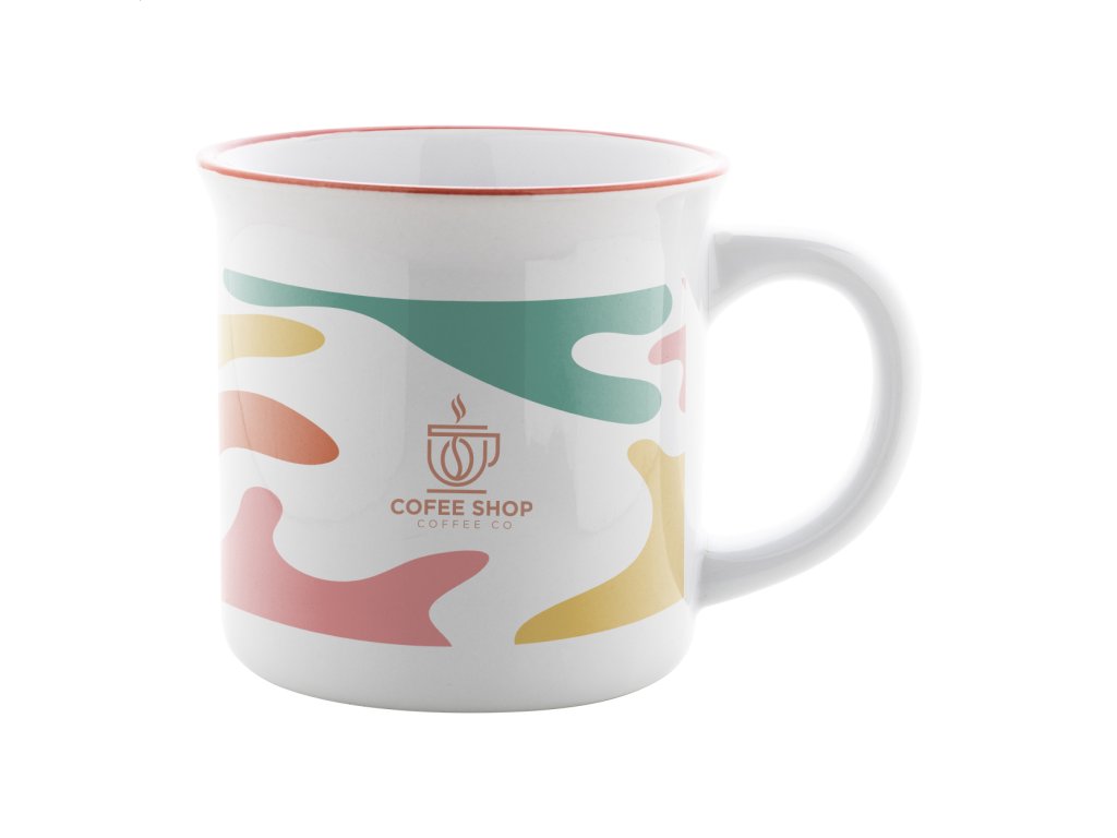 Retro keramický hrnček na sublimačnú potlač s farebným okrajom, 300 ml, v darčekovej krabičke.