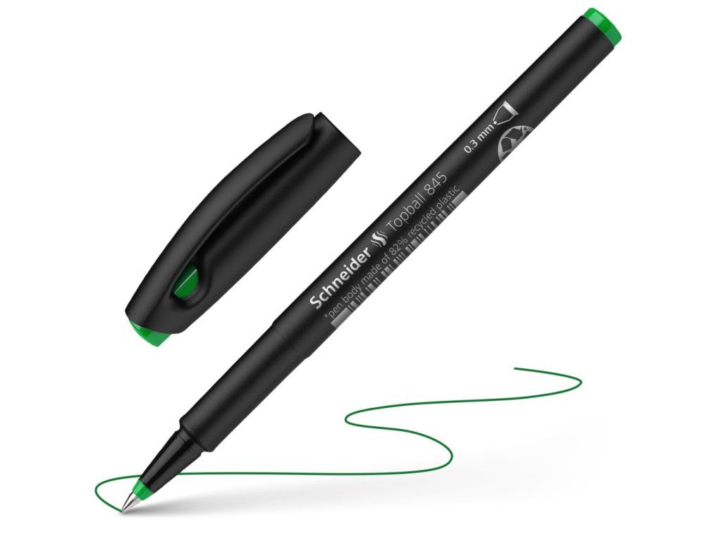 Pero Schneider Topball 857 pre ultrajemné písanie, telo má vyrobené z 82 % recyklovaného plastu.