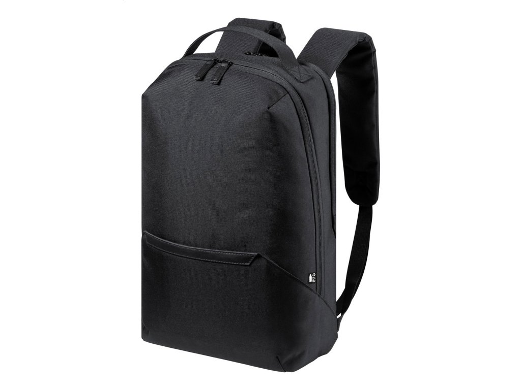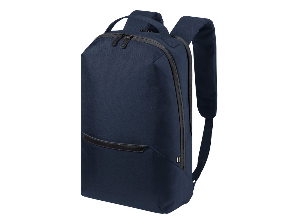 Vodotesný batoh RPET s priehradkami na zips, polstrovanou priehradkou na notebook (15") a tablet (10"), popruhom na vozík, skrytým vreckom proti krádeži, ergonomickým chrbtom a ramennými popruhmi. 600D RPET polyester s výrazným štítkom RPET.Dodatočné parametre