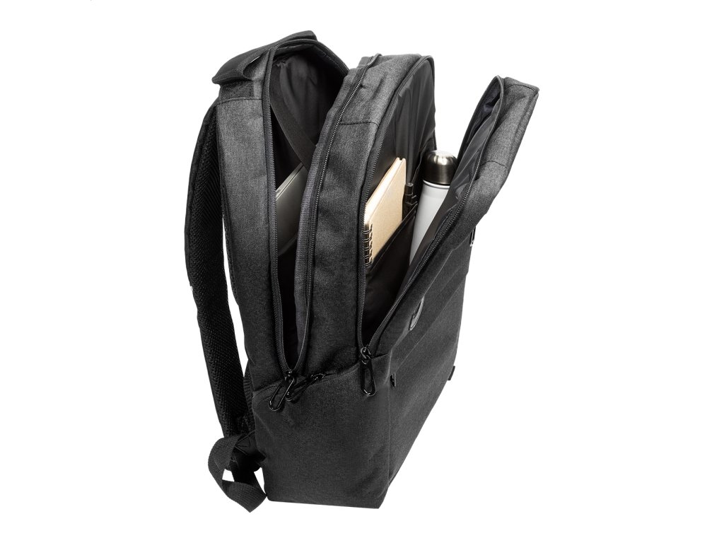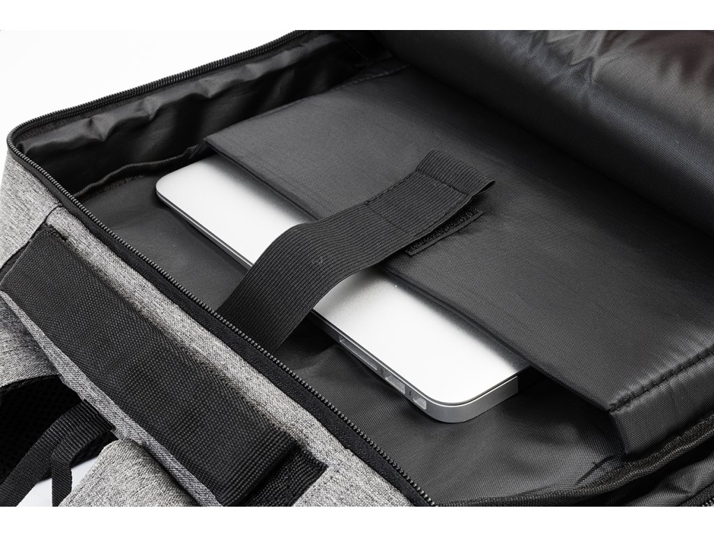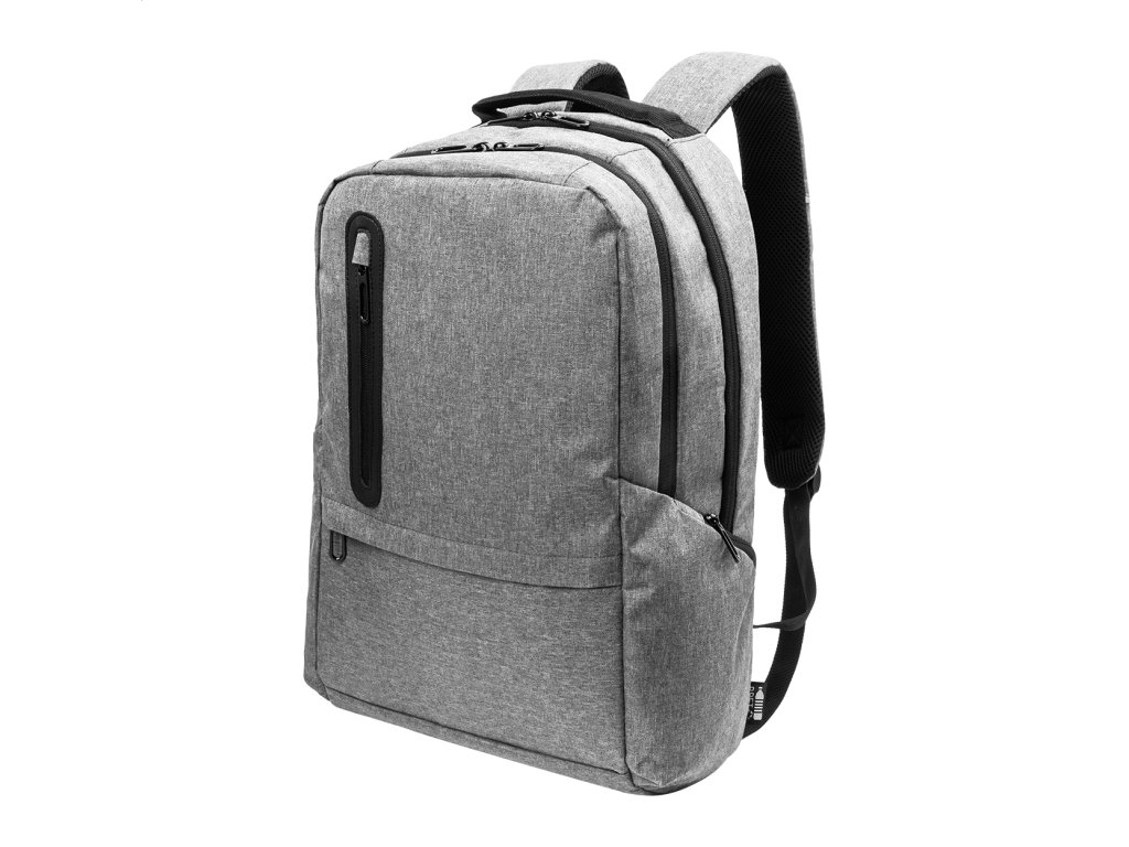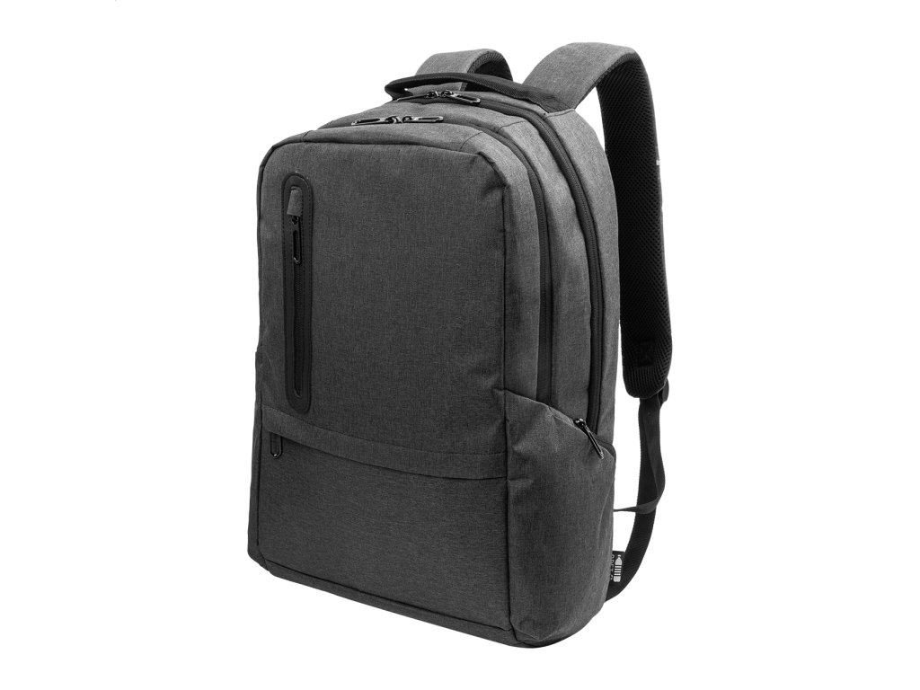 Batoh z RPET s priehradkami na zips, 2 prednými vreckami na zips, bočnými vreckami na zips a polstrovanou priehradkou na notebook (15"). S polstrovaným chrbtom a ramennými popruhmi, vreckom s ochranou proti krádeži a popruhom na kufor. Z polyesteru 300.Dodatočné parametre