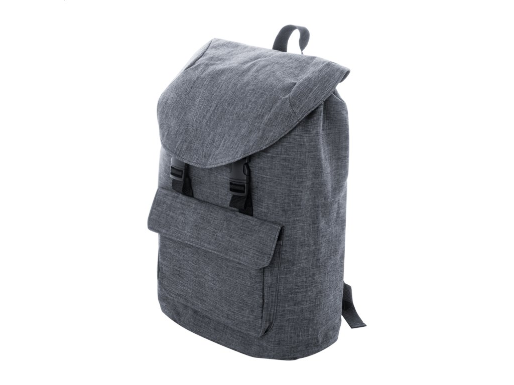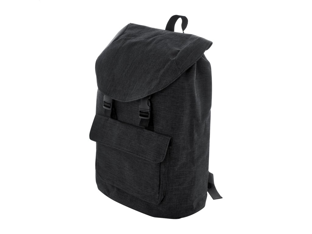 RPET batoh so zapínaním na pracku a šnúrku, predné vrecko na suchý zips, priehradka na notebook (15"), polstrovaný chrbát a ramenné popruhy. 300D RPET polyester s výrazným štítkom RPET.Dodatočné parametre