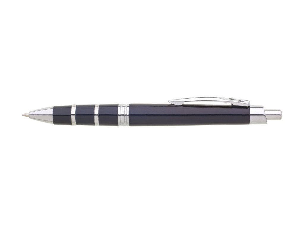 Metalické bordové tělo s chromovými ozdobnými kroužky a chromovými doplňky. Náplň gelová velkoobsahová, modře píšící.