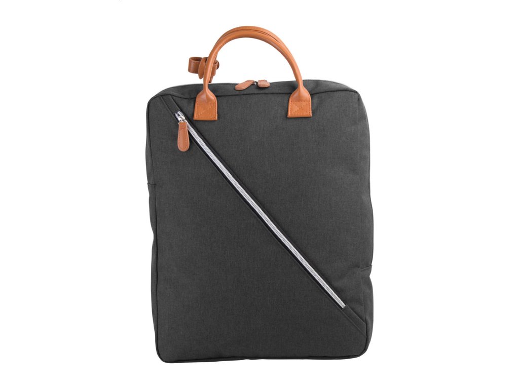 Ruksak s priehradkami na zips, vystuženou priehradkou na notebook, uška z PU kože a nastaviteľnýnu ramenným popruhmi. 300D polyester.
