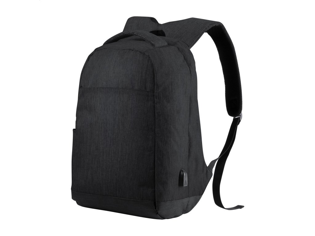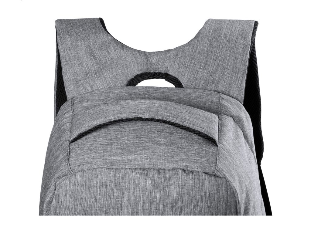 Ruksak s ochranou proti krádeži s viacerými priehradkami na zips, vystuženým priestorom na notebook (15") a tablet (12"), chrbtom a ramennými popruhmi. So vstavaným USB pripojením na power banky. 300D Polyester.Dodatočné parametre