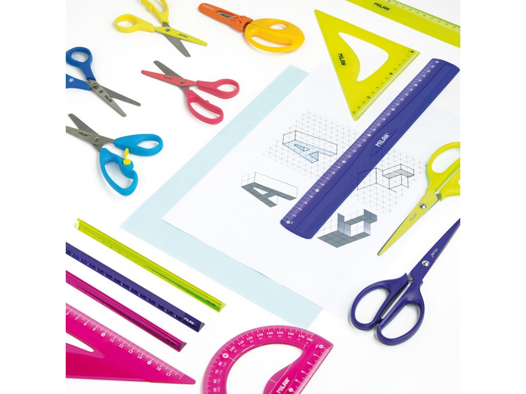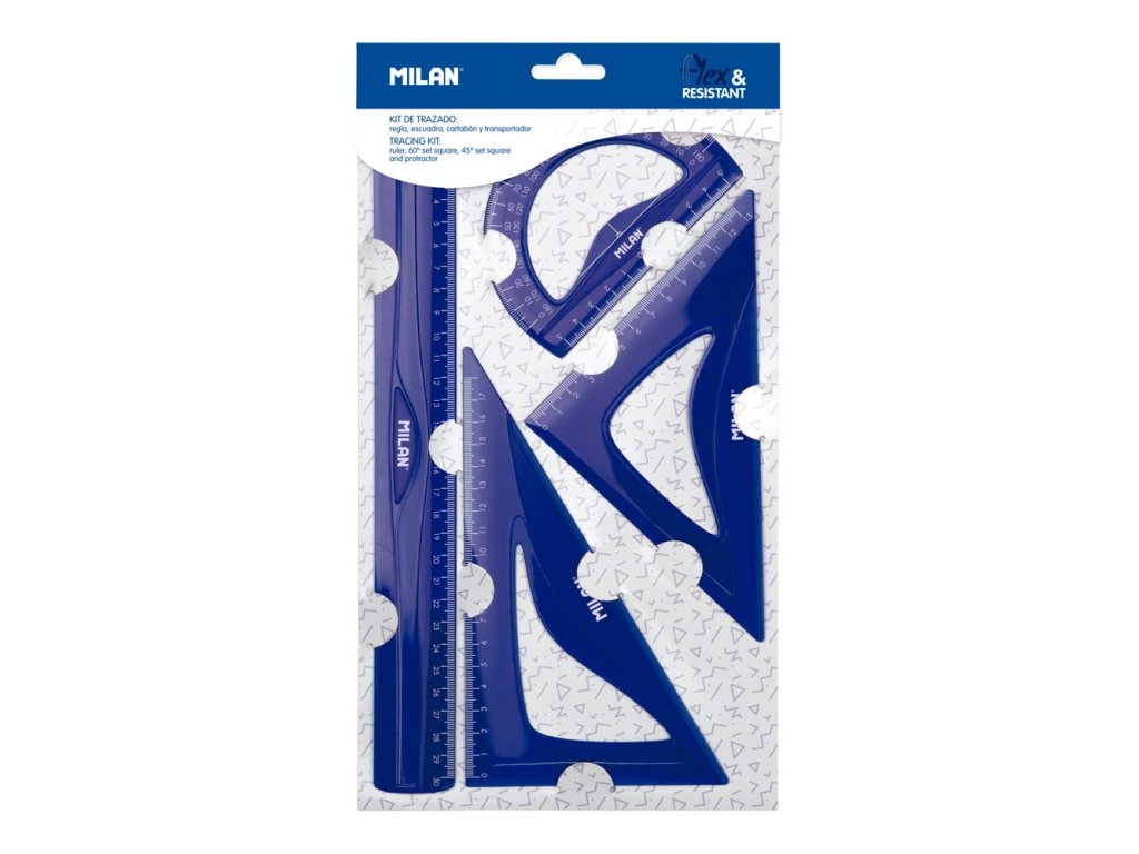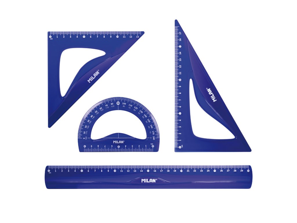 4-kusová rysovacia sada pravítok značky MILAN, vyrobená z ohybného a odolného materiálu (Flex & Resistant)
