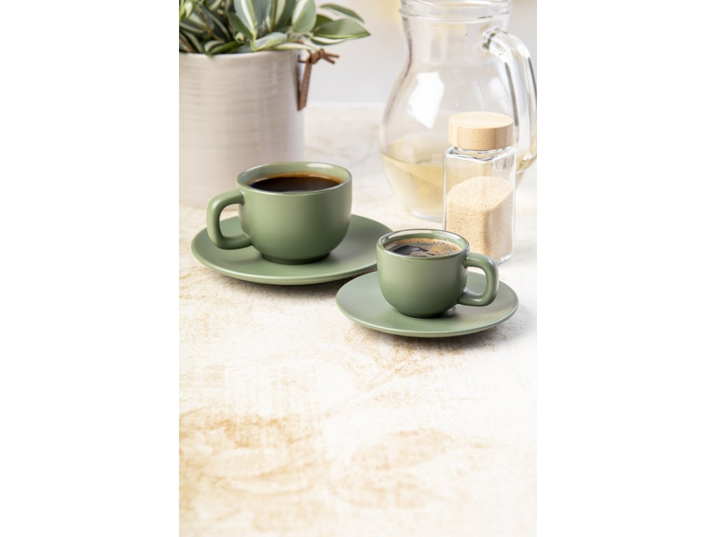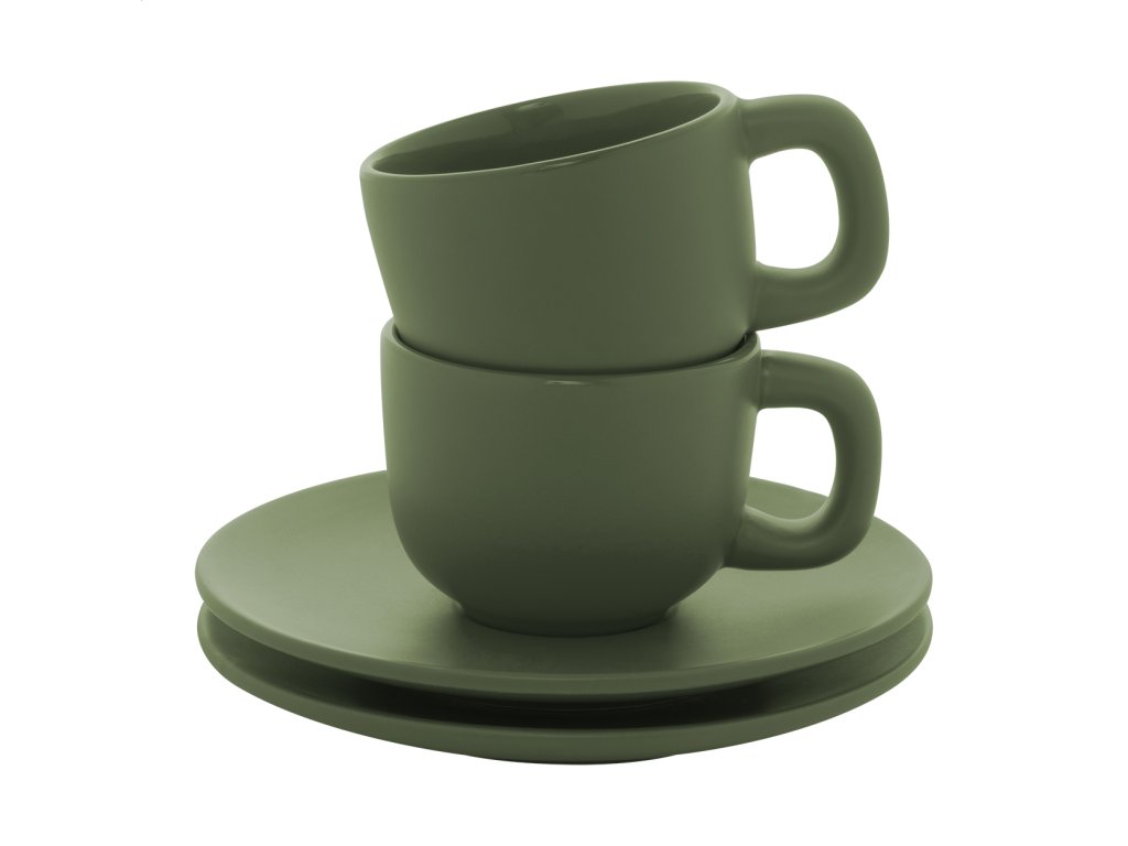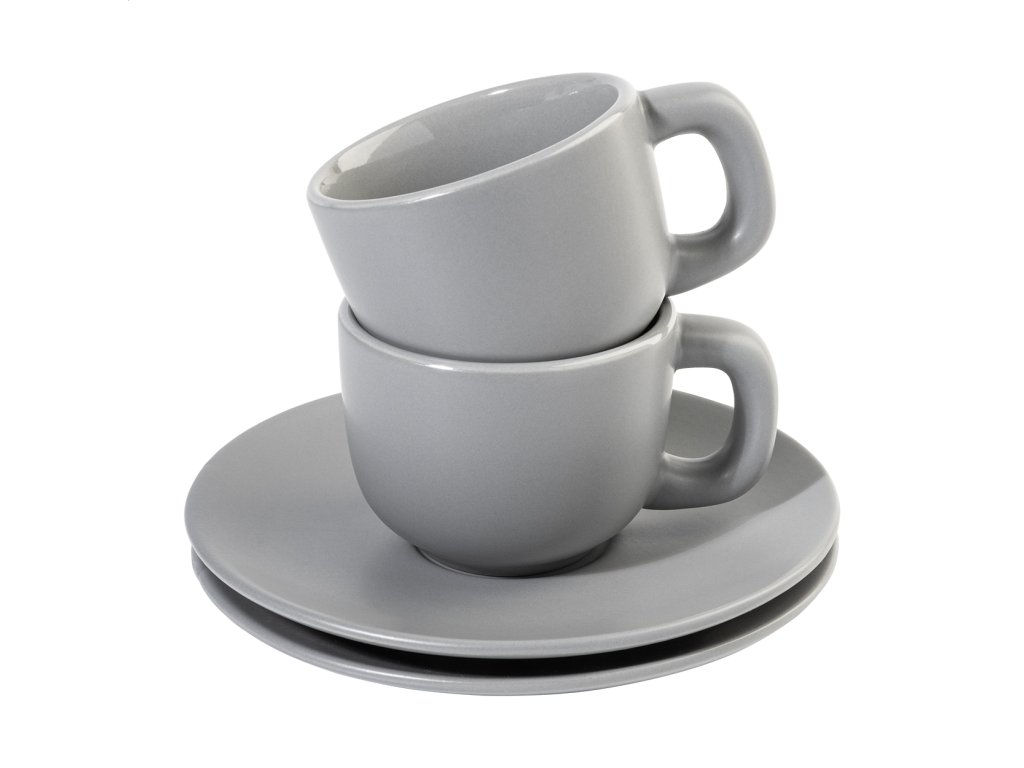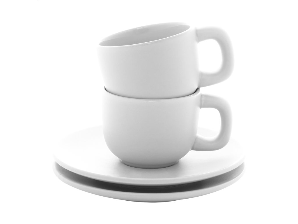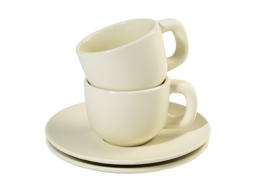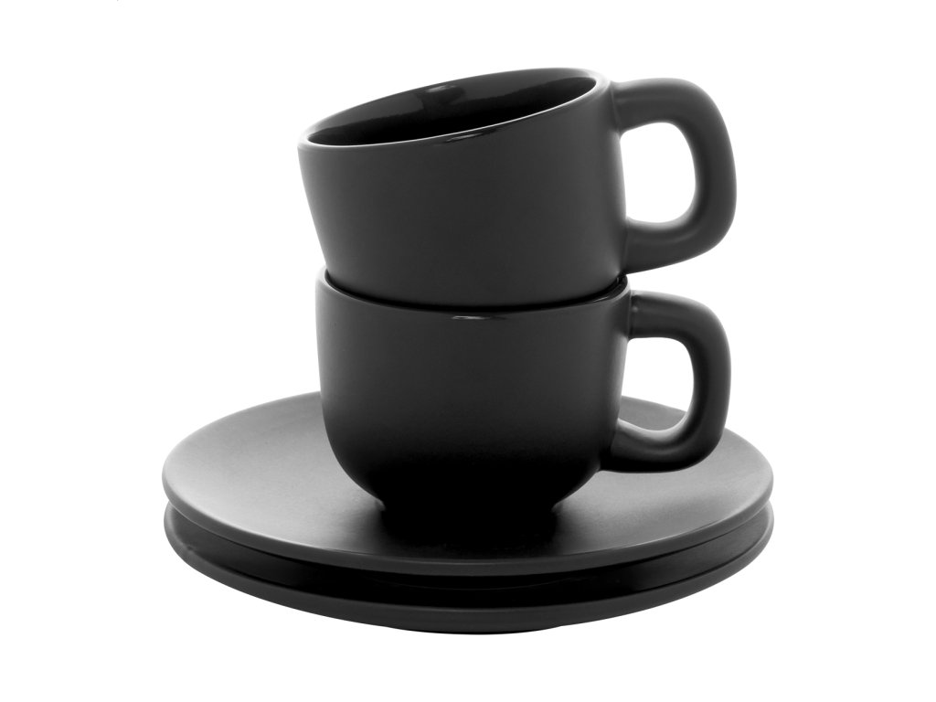 Vysoko kvalitná sada keramických šálok na espresso s 2 šálkami a podšálkami. S matnou vonkajšou a lesklou vnútornou povrchovou úpravou. 85 ml. V kraftovej papierovej krabici.Dodatočné parametre