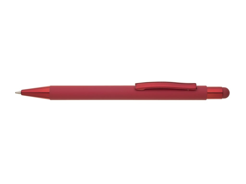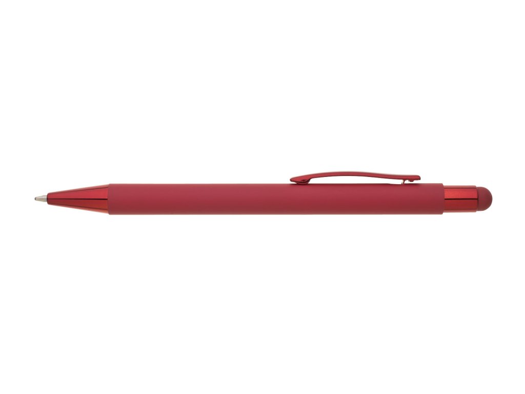 Pogumované matné červené telo pera doplňujú lesklé doplnky vo farbe tela a matný touch koniec. Logo je po vylaserovaní lesklé, strieborné. Veľkoobsahová modrá náplň.Dodatočné parametre