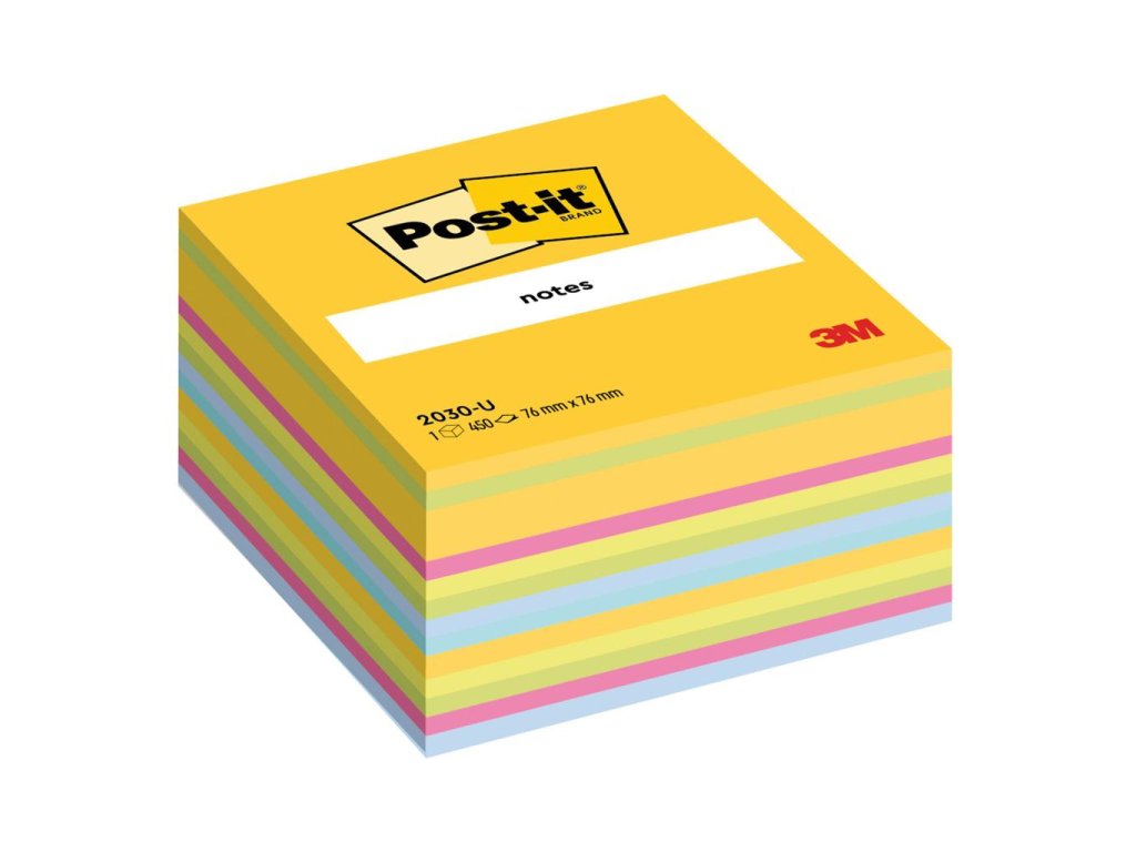 Post‑it® lístky v kocke v mice farieb. 450 lístkov v jednej kocke. Rozmery 76 × 76 mm.- Post-it® kocky bločkov sa dodávajú v najrôznejších farbách a sú ideálne pre používateľov, ktorí nešetria slovami.