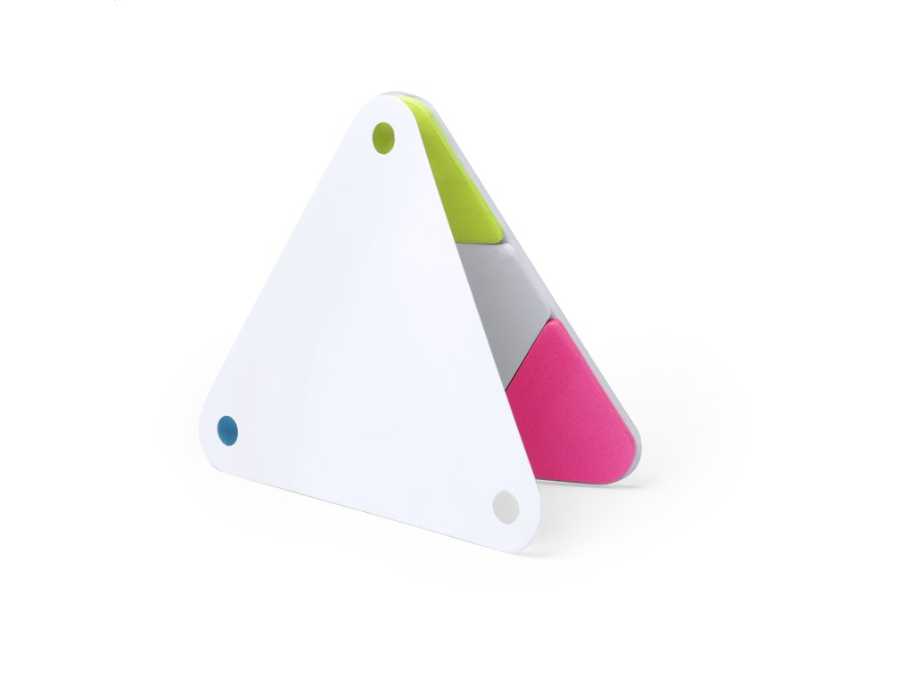 Trojuholníkový blok s doskami z recyklovanej lepenky so samolepiacimi lístkami v 2 veľkostiach. Vrátane 20 ks 6-hranných a 60 ks trojuholníkových lístkov.Dodatočné parametre