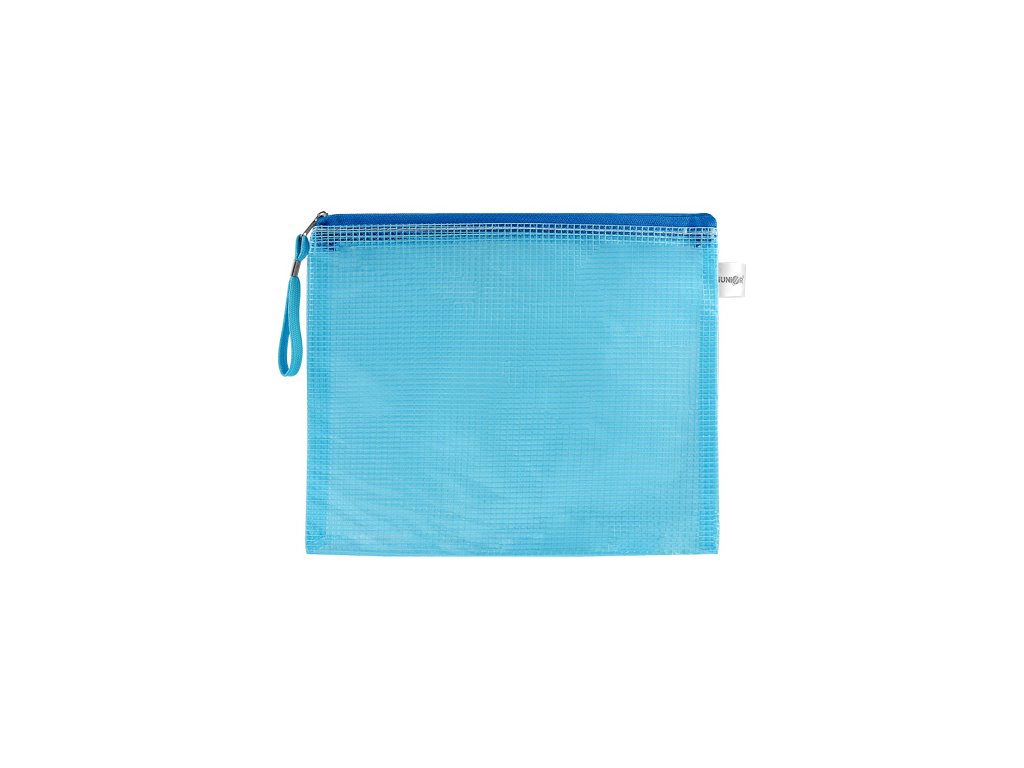 Sieťovaná obálka s praktickým uzatváraním na zips, vyhotovená z PVC. Široká možnosť využitia - určené napr. na prenášanie a uchovávanie dokumentov, fotografií, CD, diskiet. Farba: modrá.Dodatočné parametre