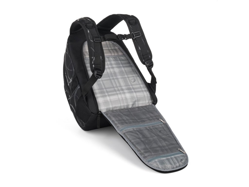 - Batoh má vystužený chrbát, hrudný pás a nastaviteľné ramenné popruhy, ktoré sa správne prispôsobia telu.